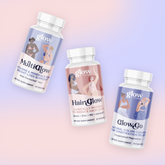 - Choose any 2 of 3 Glow Supplements (MultiGlow vitamin, Hair Glow vitamin, GlowGo supplement) - even 2 of same